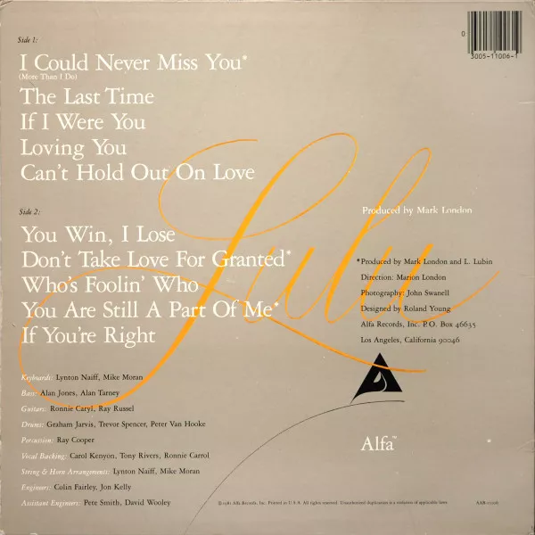 Lulu. I could never miss you more than i do. 1979
