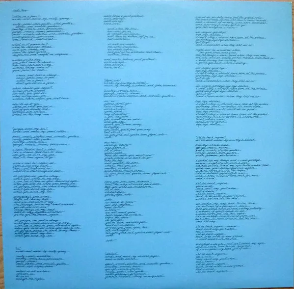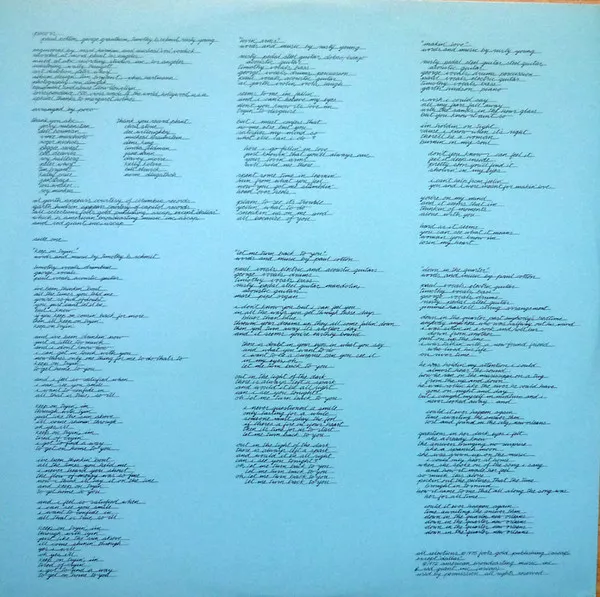 [l=Columbia Records Pressing Plant, Terre Haute] pressing denoted by "T 1" etches in runouts. Issued with stiff-paper lyric / credit inner sleeve. Al Garth appears courtesy of Columbia Records Garth Hudson appears courtesy of Capitol Records