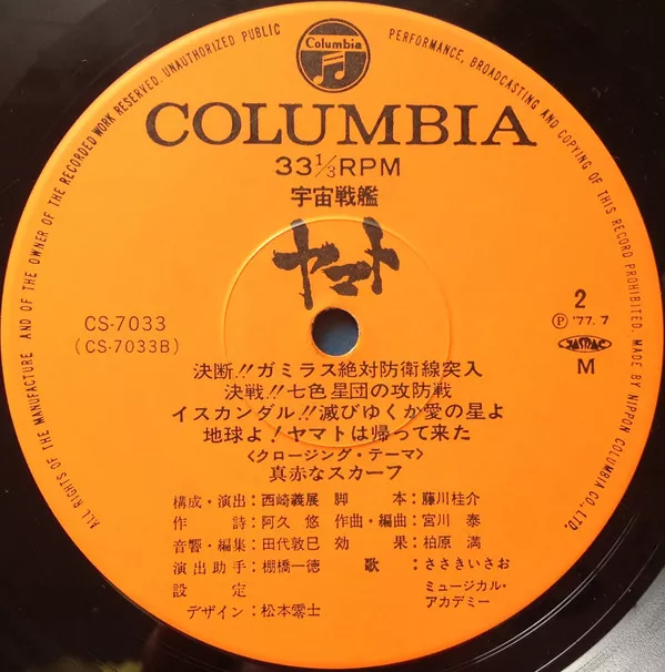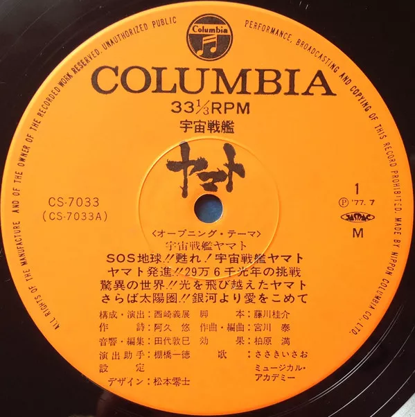 Soundtrack to the 1977 Japanese anime film [url=https://en.wikipedia.org/wiki/Space_Battleship_Yamato_(1977_film)]Space Battleship Yamato[/url] directed by Leiji Matsumoto. Also known as 'Space Cruiser' in English speaking countries.