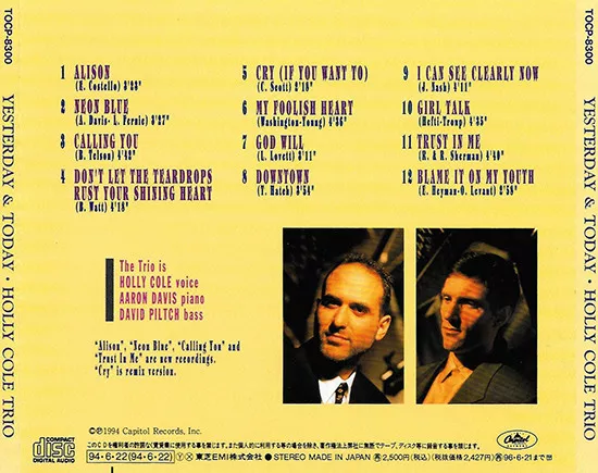 Yesterday and Today : Holly Cole 【おすすめジャズCD】I recommend blame it on my youth of this CD.