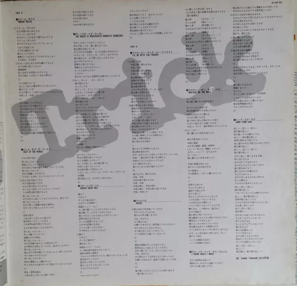 Includes 4-page insert containing color photo of band on front, Japanese liner notes and lyric translation on the inside, and English lyrics (in red text over "Dream Police USA