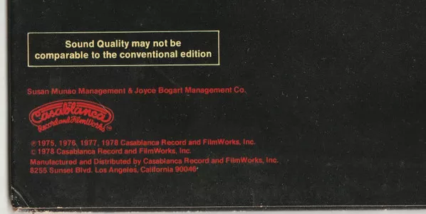 "Sound Quality may not be comparable to the conventional edition" is printed on the back of the sleeve.