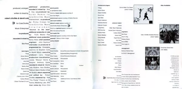 Tracks 1, 5, 6 to 8, 15 to 17 [published by] Cole/Clivillés Music / EMI Virgin Music, Inc. (ASCAP).
