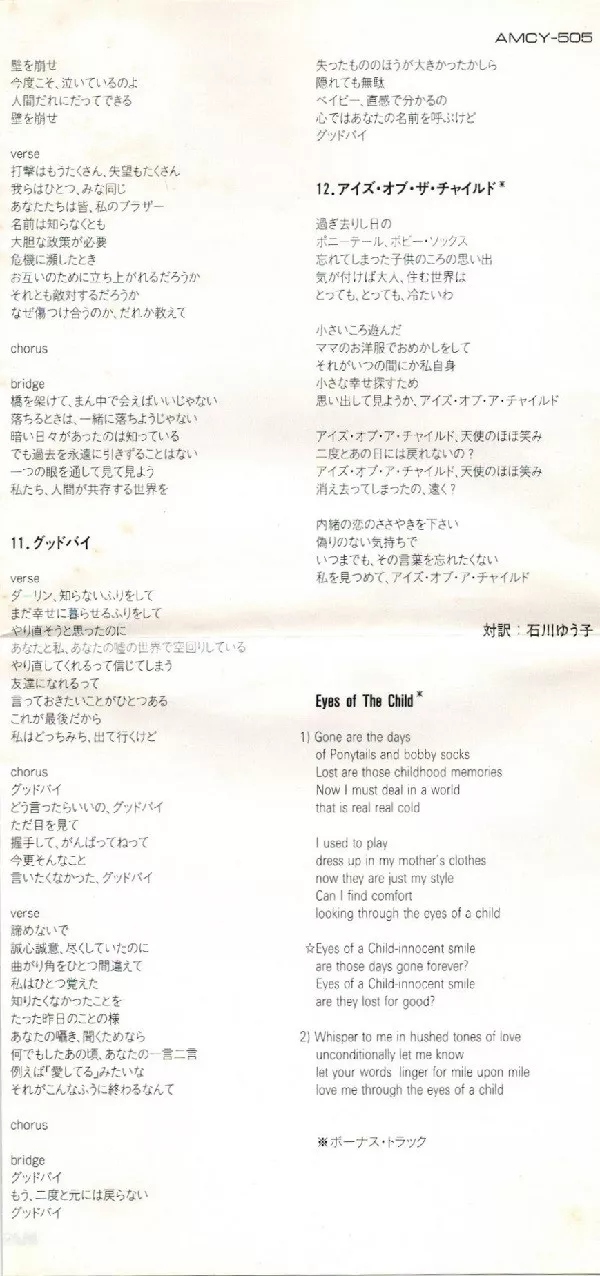 16 page lyric booklet + foldout insert of notes/lyrics in Japanese + obi.