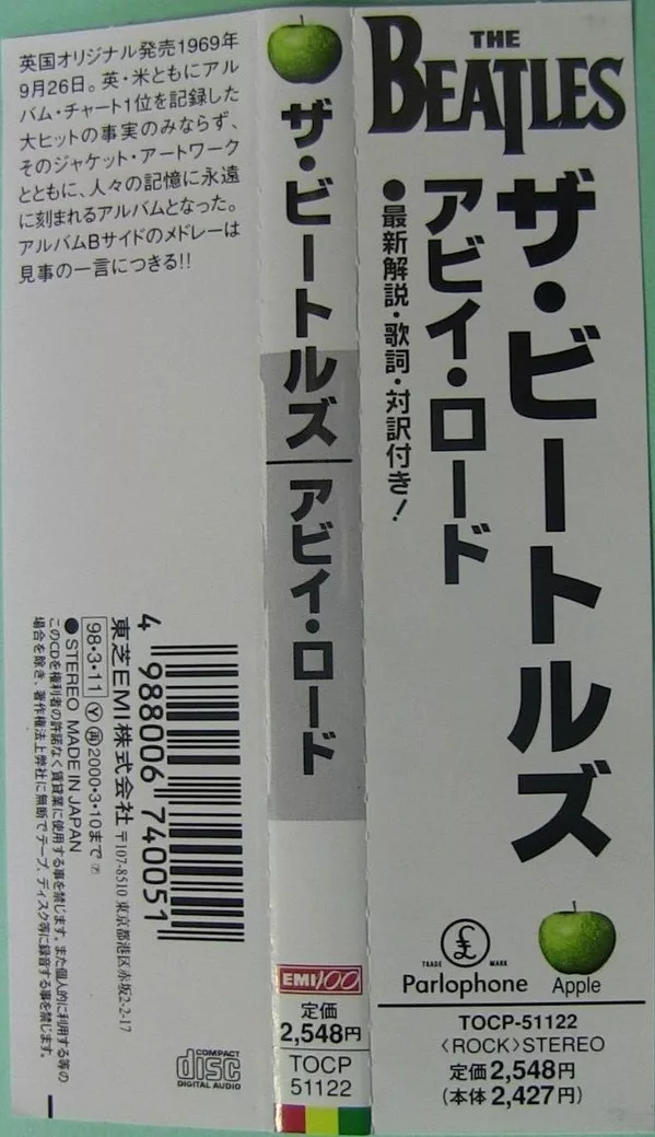 Apple Records, TOCP-51122, CDP 7 46446 2, 1998, Japan PRESS