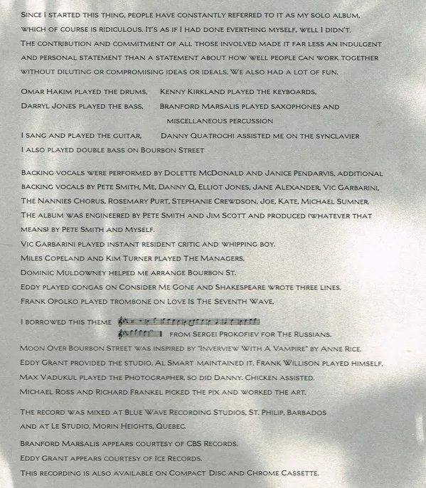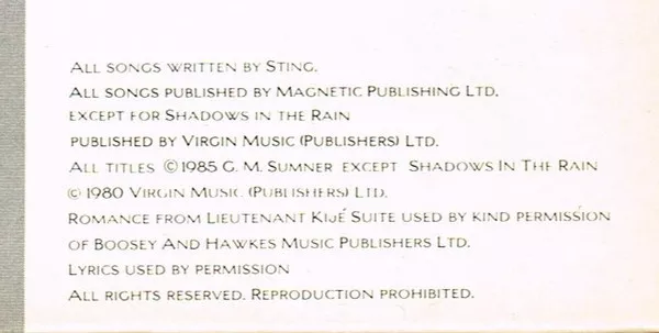 Sting is credited as "Me" for backing vocals' credit and "Myself" for producer's credit.