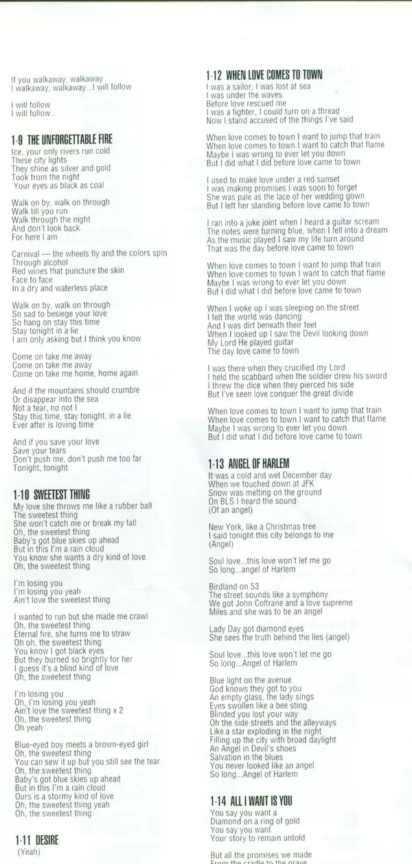 All tracks written by U2 and published by PolyGram International Music Publishing BV, except Blue Mountain Music Ltd. (UK), Mother Music (IRL), Taiyo Music Inc. (Japan).
