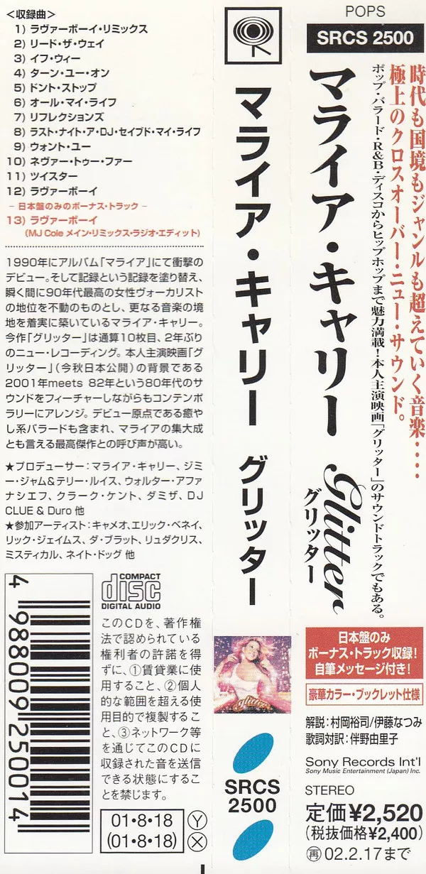 Contains an additional booklet with text and lyrics in Japanese, and also a special message from Mariah.