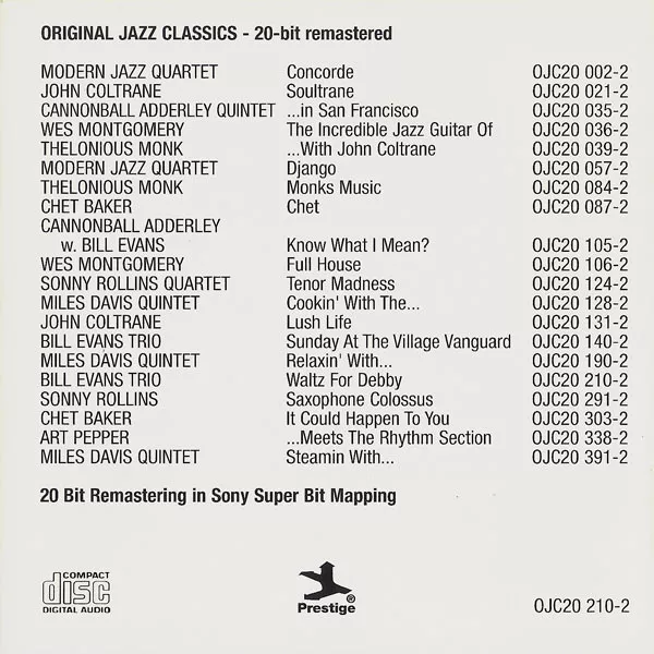 Original Jazz Classics, OJC20 210-2, 9399, 0, Europe PRESS