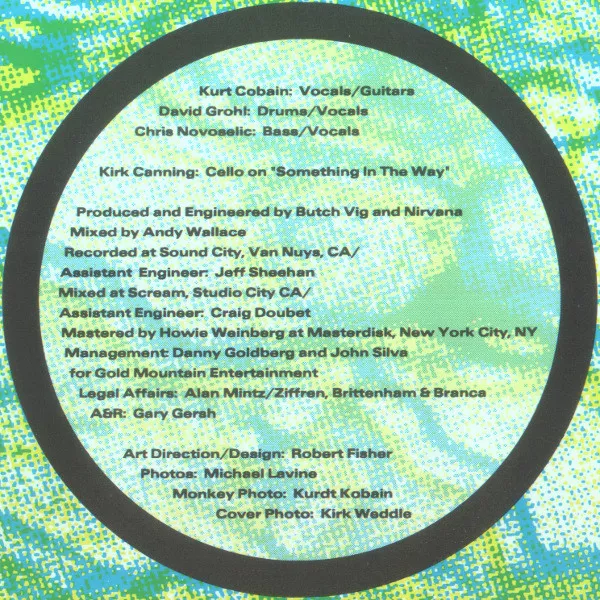 This is the 1st pressing which does not contain the hidden track "Endless, Nameless". The first pressing, without the cut, has a light-sensitive black rim around the disc on the label side.
