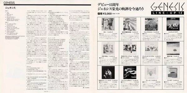 Issued with obi & 4-page insert featuring English lyrics (replicates original US/UK printed inner sleeve) and Japanese liner notes with "Genesis Line-Up 12" 1983 Nippon Phonogram ¥2,000 reissue campaign.