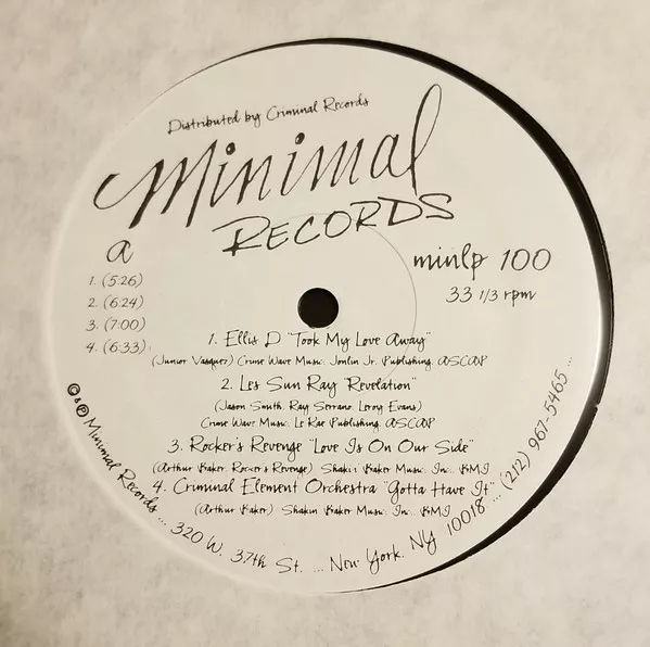 Distributed By Criminal Records. White label, info at bottom differs slightly from [r=39675] and is in different font (320 W. 37th St. instead of 222 W. 37th., New York, NY instead of N.Y. N.Y., etc.)