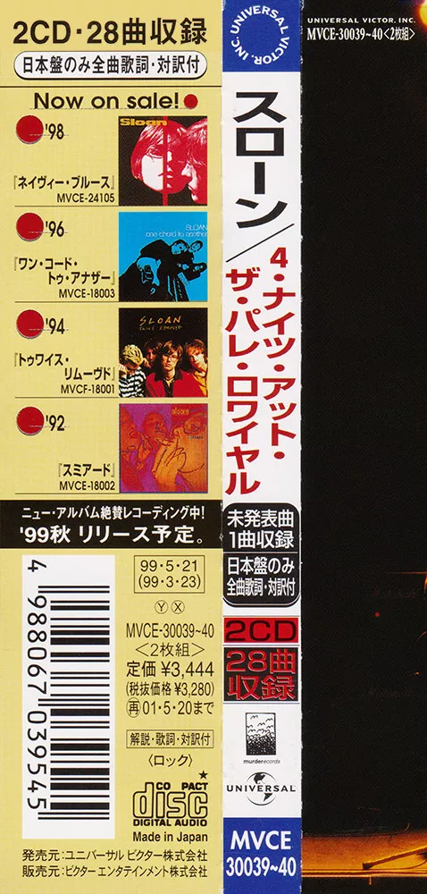 In jewel case with clear flip tray and obi. Twelve page illustrated booklet includes track-by-track commentary by Sloan. An additional twenty eight page booklet includes liner not