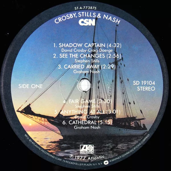 This release with "laughing" photo and CSN behind Crosby, Stills & Nash on cover. The photo is applied to the outer sleeve, not printed directly on it.