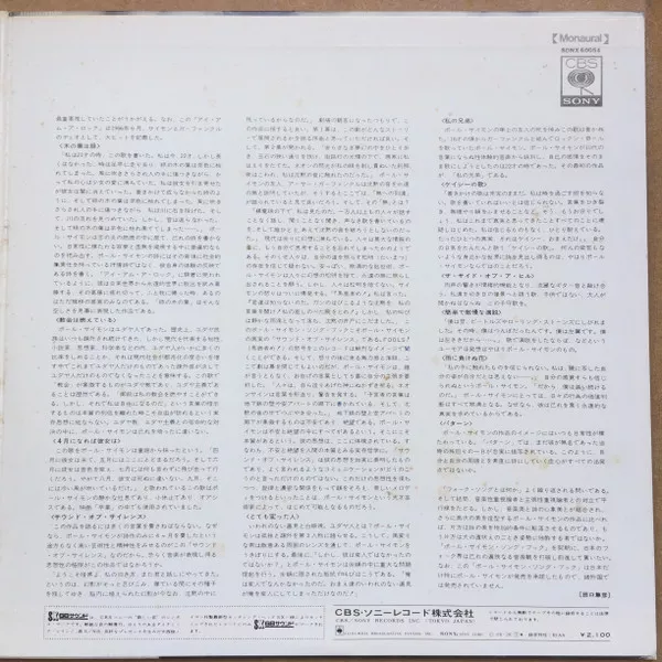 CBS/Sony, SONX 60054, 1969, Japan PRESS