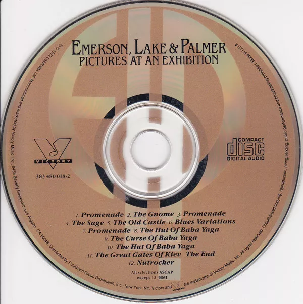 Gold CD face w/ silver ELP logo ; black Victory logo.