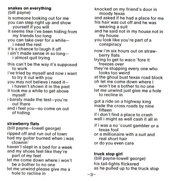 Little Feat Snakes on Everything with Lyrics in Description