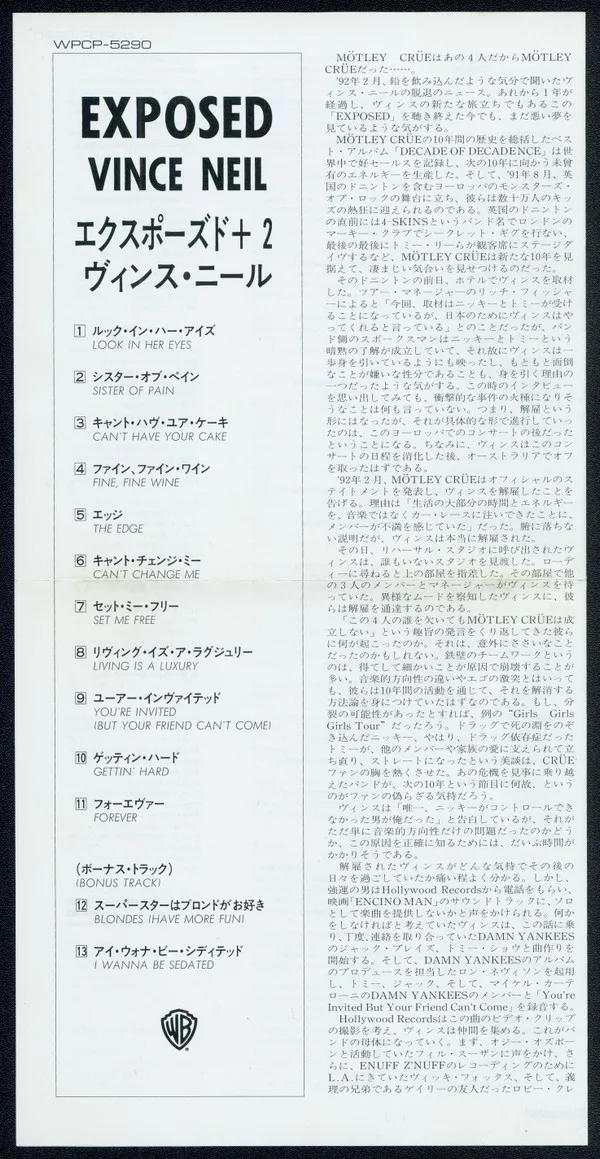 Warner Bros. Records, WPCP-5290, 1993, Japan PRESS