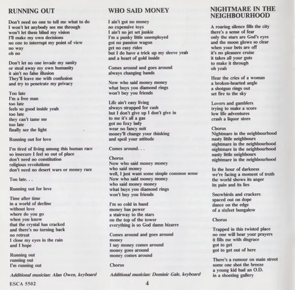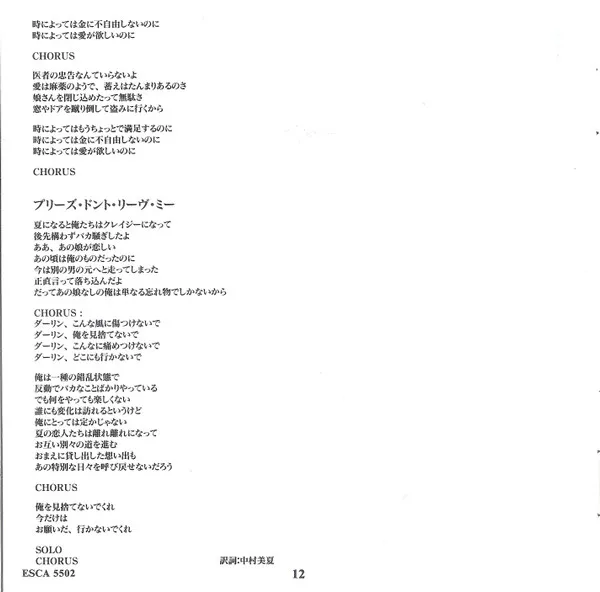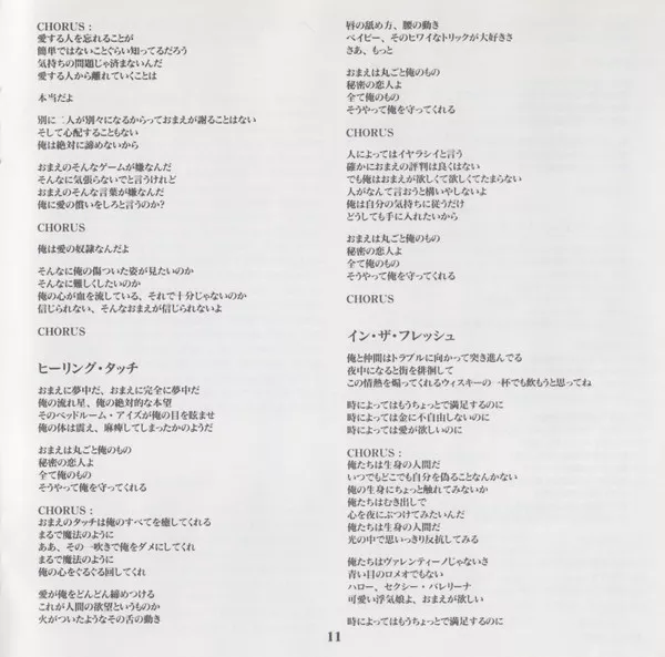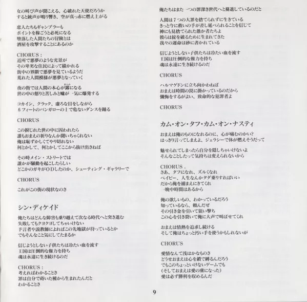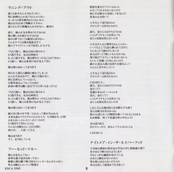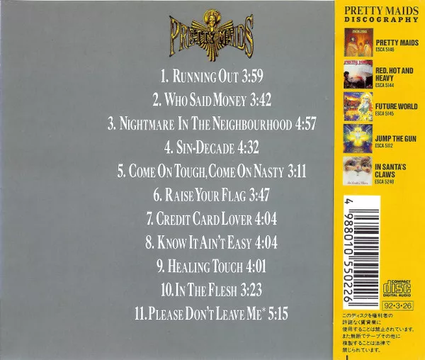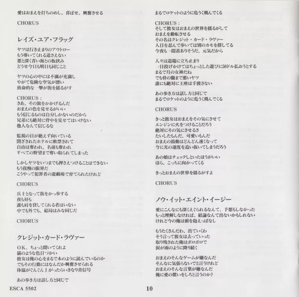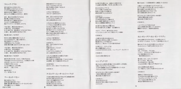 Released with Japanese/English picture/lyrics booklet cover & discography obi-strip. Initial press contained the band's photo calendar.