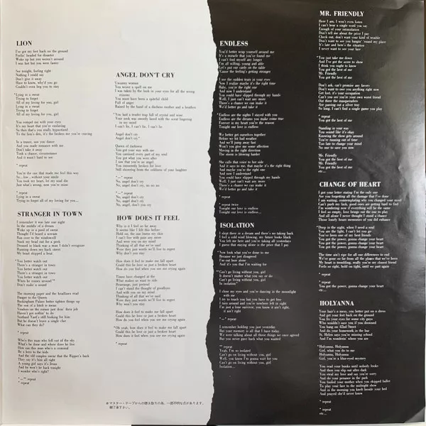 Released with 4-pages glossy Japanese/English biography/lyric insert, additional band portrait insert, extra Japanese card insert, sheet of stickers & matching card top obi-strip.