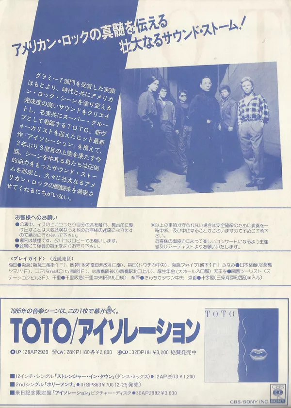 CBS/Sony, 28AP 2929, 1984, Japan PRESS