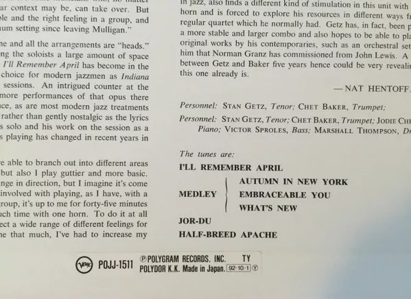 Verve Records, POJJ-1511, MG V-8263, 1992, Japan PRESS