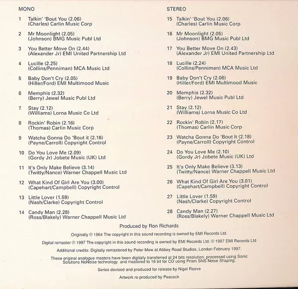 Additional credits: Digitally remastered by Peter Mew at Abbey Road Studios, London February 1997.