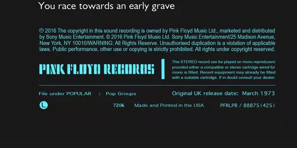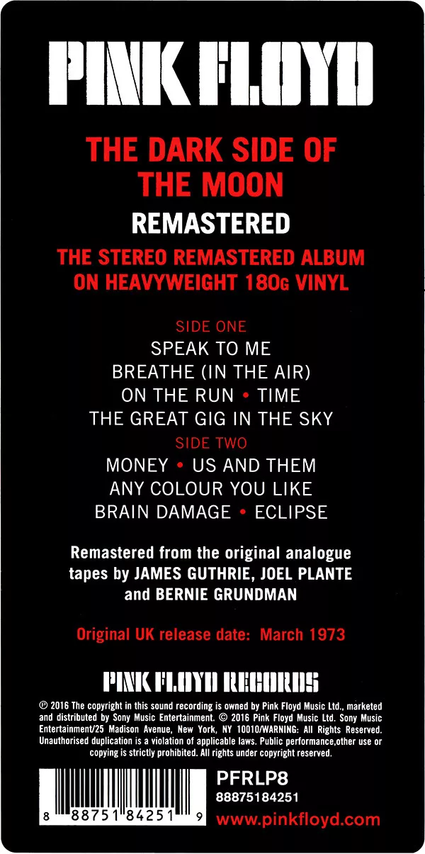 Pink Floyd Records, PFRLP8, 88875184251, 2016, USA & Canada PRESS