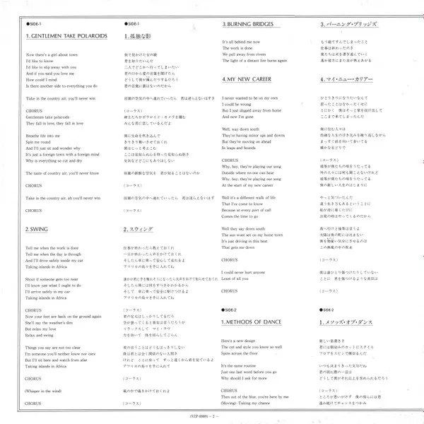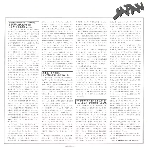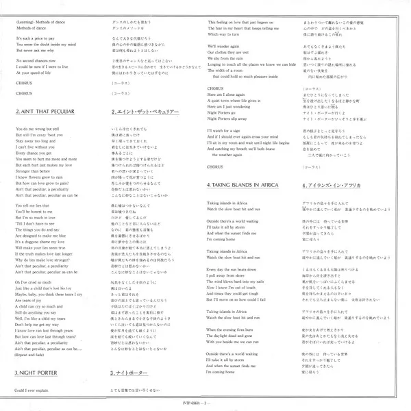 Repressed with green/red labels + obi. This release comes with a gatefold lyric insert, both in English & Japanese. The insert includes an interview with Ryuichi Sakamoto.