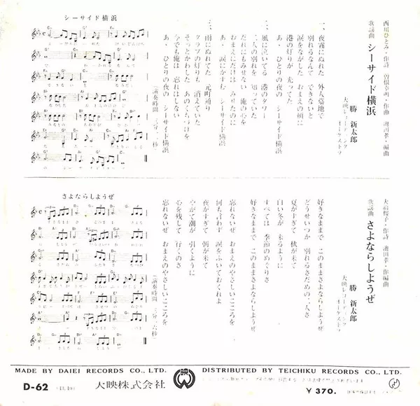 Daiei Records, D-62, 1968, Japan PRESS