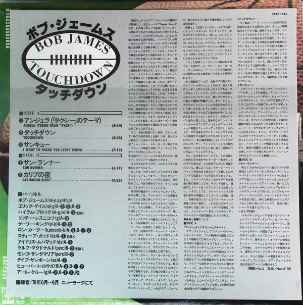 BOB JAMES Touchdown (1978 Japanese CBS Sony 'Master Sound' series. 5-track. 25AP 1184)