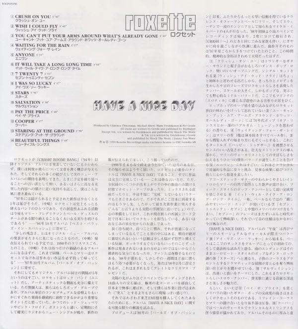 Roxette Recordings, TOCP-65156, 1999, Japan PRESS