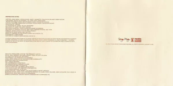 ©℗ Young Money / Cash Money Records, Inc. Manufactured and Marketed by Republic Records, a division of UMG Recordings, Inc. 1755 Broadway, New York, NY 10019. Distributed by Universal Music Distribution. All Rights Reserved. FBI Anti Piracy Warning: Un