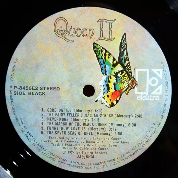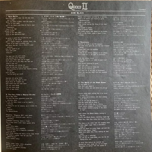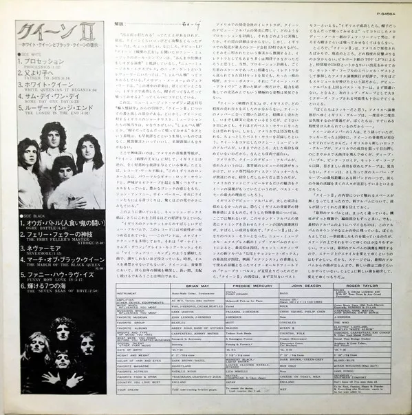 First Japanese issue in heavy gatefold sleeve with obi & 4-page b&w insert featuring Japanese liner notes, durations, credits, Queen fan club info, and lyrics in both English & Japanese.