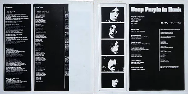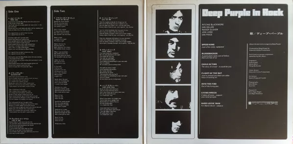 Gatefold sleeve, orange and brown obi. "Deep Purple in Rock" printed in Japanese (Katakana) on obi.