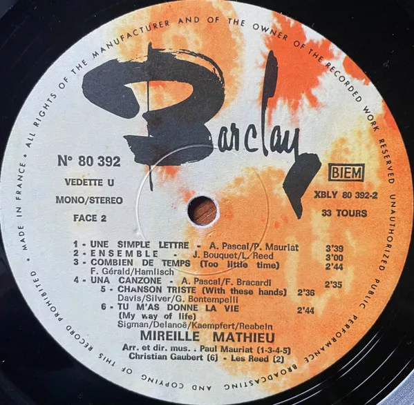 Barclay, 80 392, 1969, France PRESS