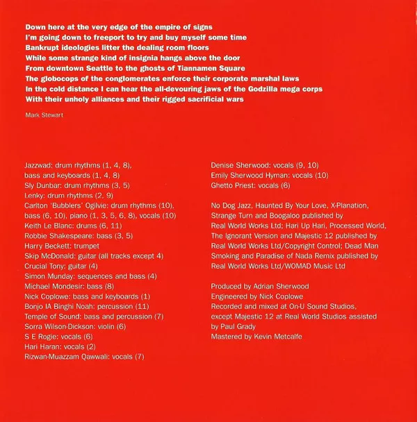 Recorded and mixed at On-U Sound Studios, except track 11 at Real World Studios.