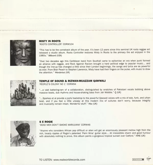 Real World Records, CDRW110, 7243 813224 2 0, 2003, UK & Europe PRESS