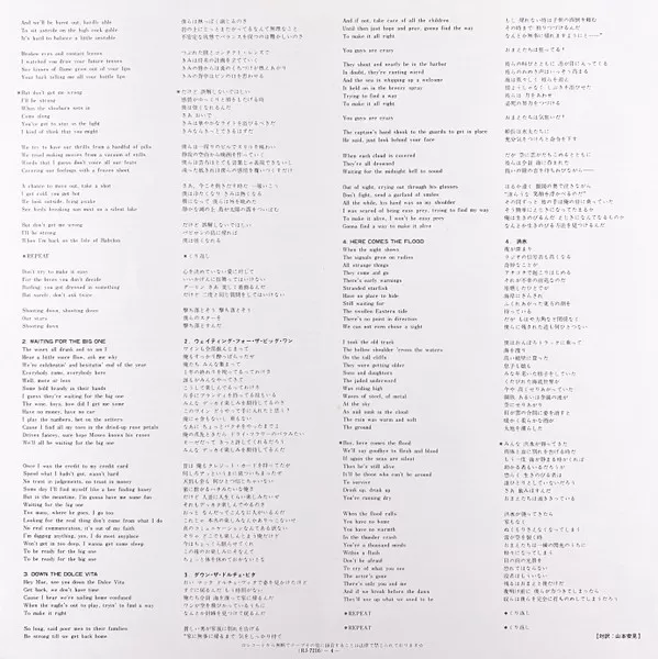 Issued with obi and a four-page fold-out liner notes and lyrics insert in Japanese.