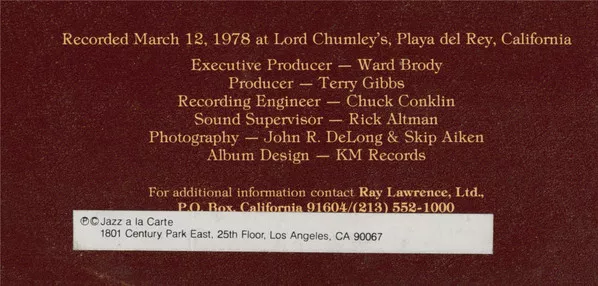 Recorded March 12, 1978 at Lord Chumley's, Playa del Rey, California.