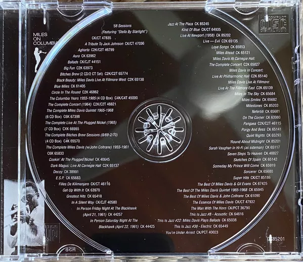 Note there is also on the CD tray inner 'Miles On Columbia' above a silhouette of Miles and trumpet and a listing of many (all?) reissues available eg [r1419518] and [r3804866]. The silhoue