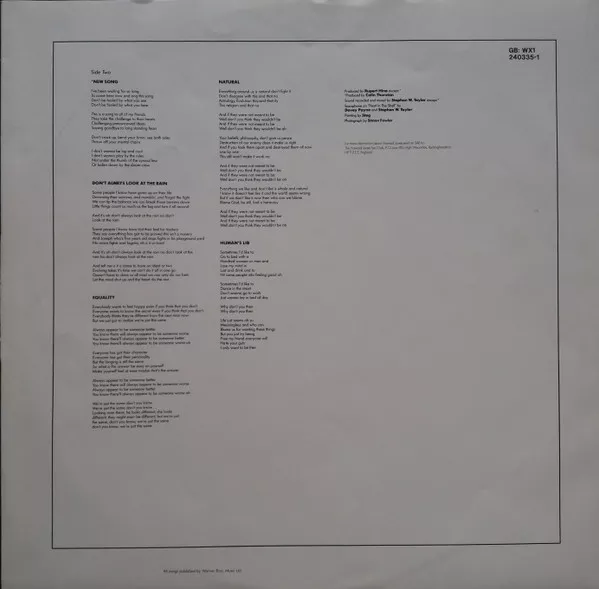 Comes with a printed inner sleeve containing lyrics.