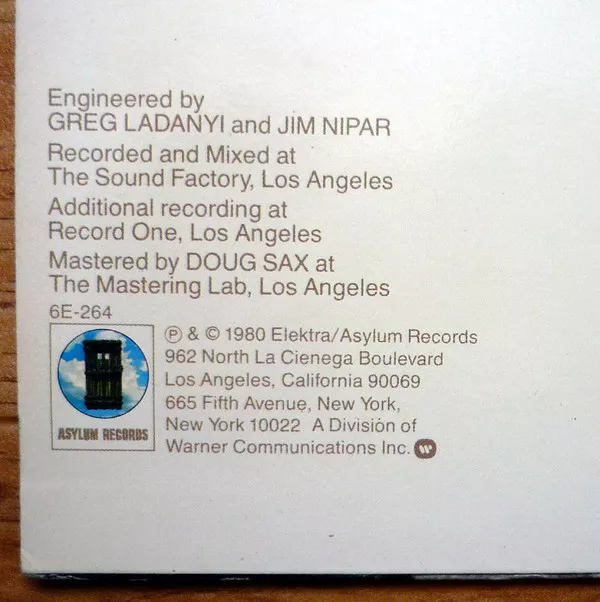 Asylum Records, 6E-264, 1980, USA PRESS