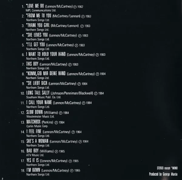 Tracks 2 to 9, 11, 14, 15, 17, 18 Northern Songs Ltd.