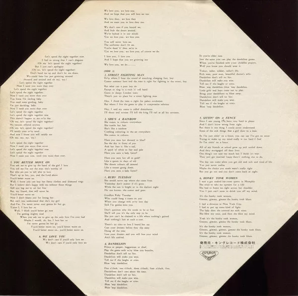 The first inner page features a coloured photograph of the Rolling Stones.