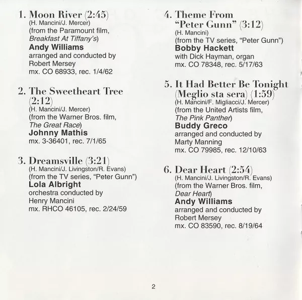 #1: From the film Breakfast At Tiffanys, recorded 1962-01-04