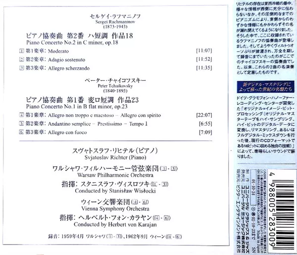 Recordings: Warsaw, Philharmonic Hall, 4/1959 (Rachmaninov); Vienna, Musikverein, Großer Saal, 9/1962 (Tchaikovsky)