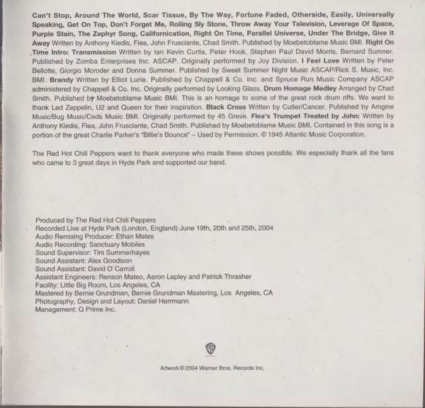 Recorded live at Hyde Park on June 19th, 20th, & 25th 2004.