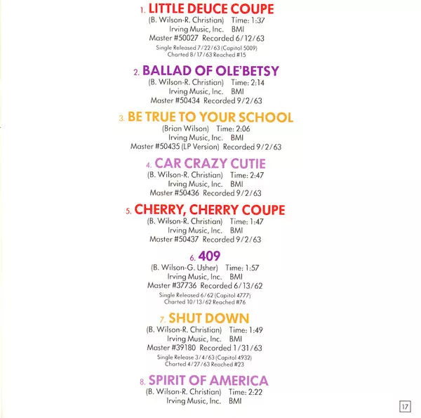 Tracks 1-12 from LP, 'Little Deuce Coupe', released October 7, 1963.