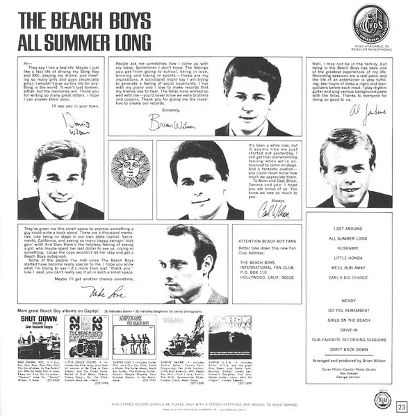 Tracks 13-24 from LP, 'All Summer Long', released July 1, 1964.